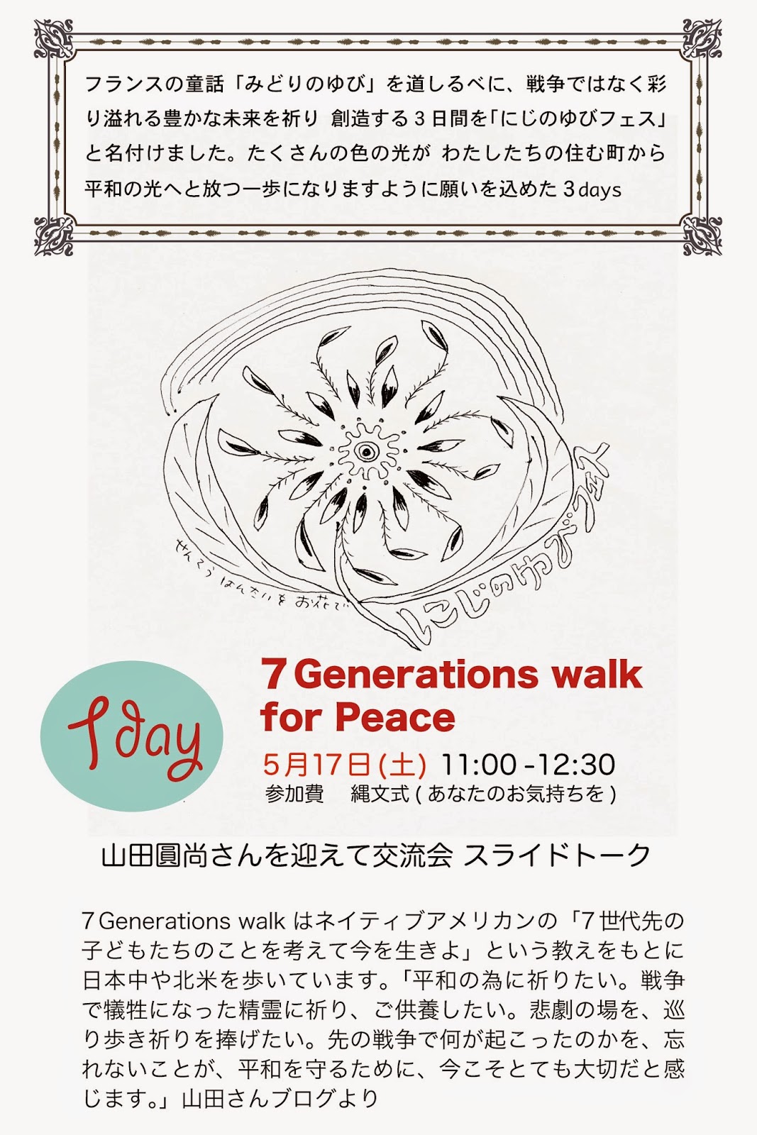 たくさんの光の色がわたしたちの住む町から平和の光へと放つ一歩になりますように願いを込めた三日間です。一日ごとに講師を招いた参加形式のトークショー、みどりのゆびをモチーフにした演劇。また楽しい、美味しい、ためになる!飲食物やハンドメイドの販売がありますので、お時間のある日には是非顔を出してみてください!