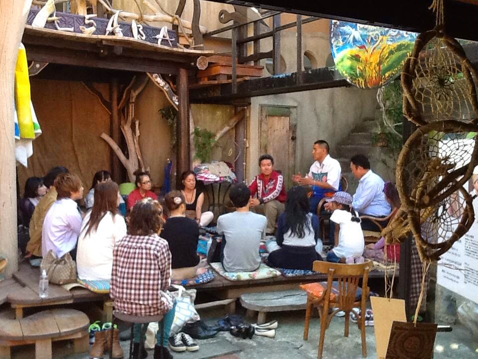 後半はキャンドルの光の中でホピの祭壇を築き、お互いの思いを語り、分かち合い、静寂な安らかな空気の中であっという間に終了の8時を過ぎてしまいました。奥様のバービーさんが作ってくれた揚げたてのインディアンブレッドがとても美味しかった、、、